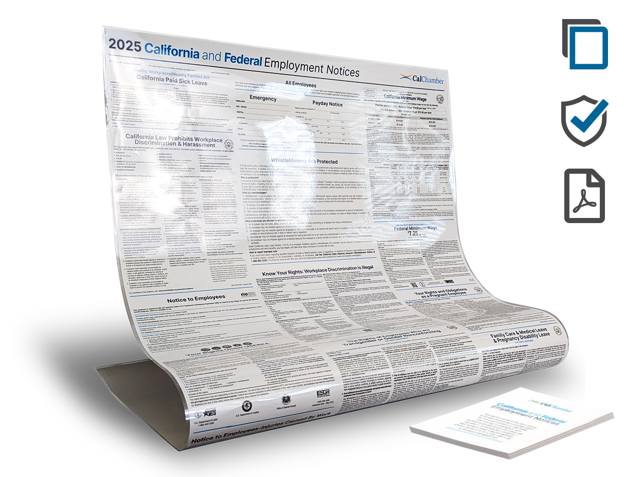 Why buy your posters from CalChamber? We monitor mandatory updates throughout the year and our direct contact with state agencies enhances our ability to provide accurate, up-to-date employment and labor law notices.