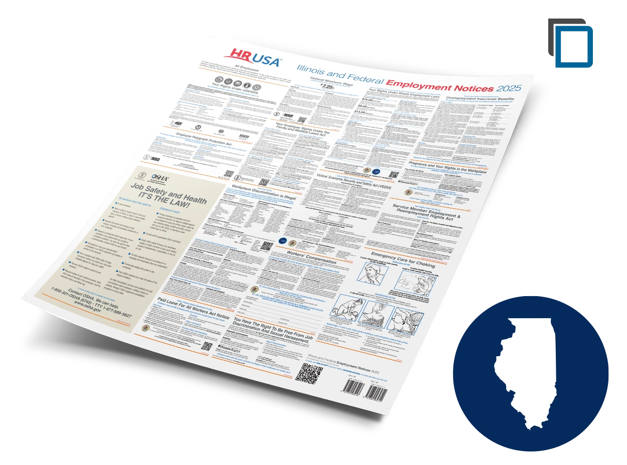 HRUSA's convenient 27.5" x 30" all-in-one poster contains easy to read state and federal employment notices every Illinois employer must post—even if you only employ one person in Illinois. Make sure you're in compliance.