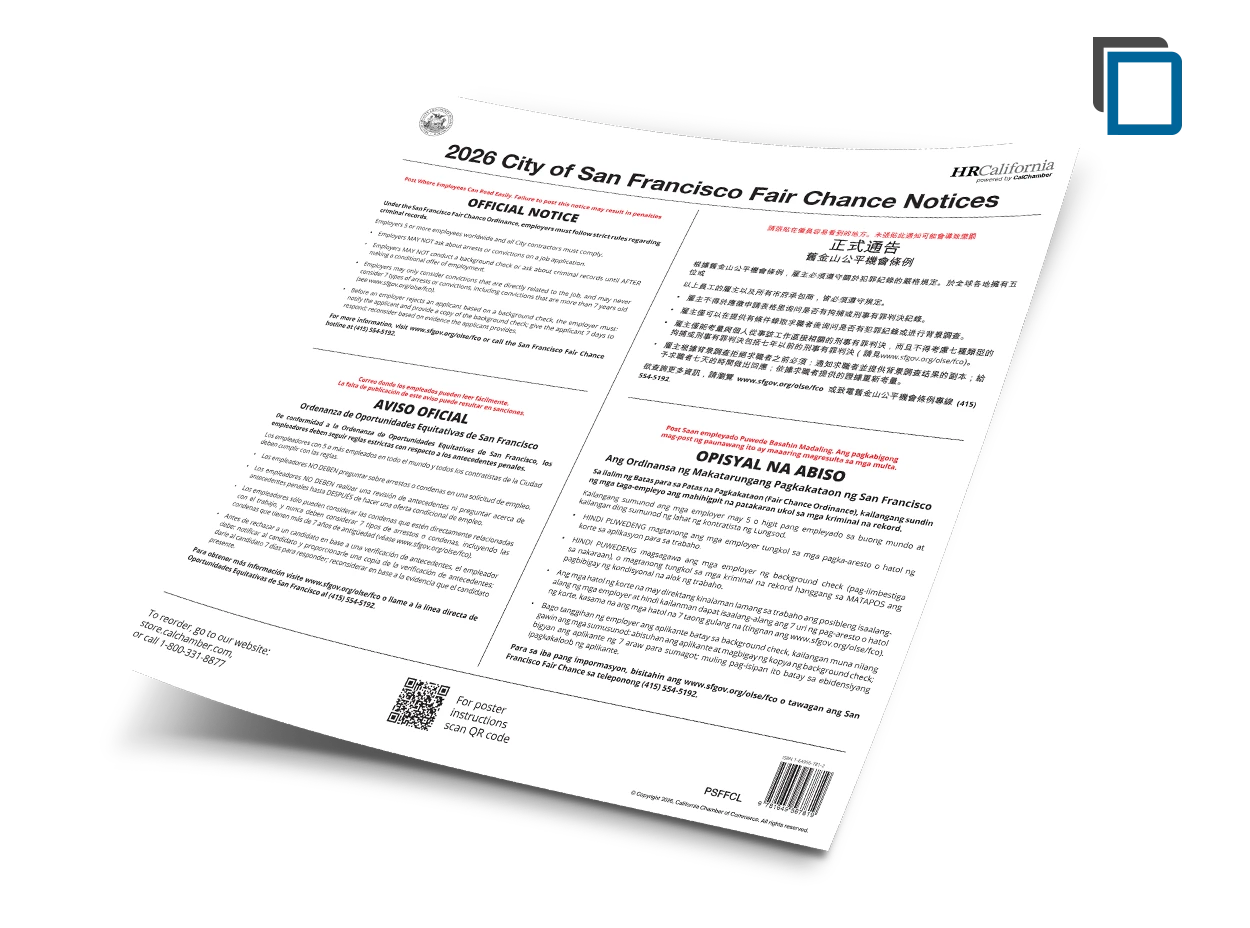 Based on your number of employees, purchase San Francisco's mandatory postings as a single poster or a multiple-poster set:
