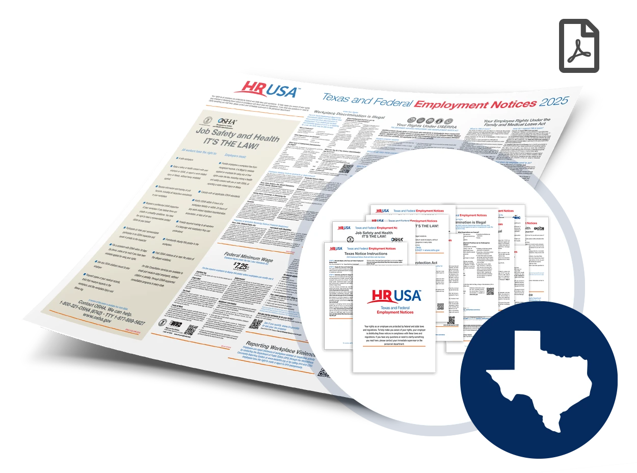 Digital Texas and Federal Labor Law Notices & Complimentary Paper Poster (Sales of this product are final. No returns or refunds. Digital notices are not sold separately.)
